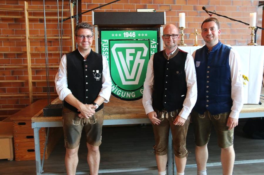 Vor dem Schlusssegen betraten die drei Vorsitzenden, Peter Puscher, Florian Zellner und Markus Riedl die Bühne und ließen die Vereinsgeschichte Revue passieren. Von den ersten Fußballplätzen bis zum Baubeginn des Sportheimes und der Turnhalle, über diverse gesellschaftliche Veranstaltungen zur Steigerung der Einnahmenseite bis hin zur gesellschaftlichen Bedeutung des Vereins in der Ortsgemeinschaft und dem großen sportlichen Angebot der FVgg spannten sie den Bogen und erinnerten so auch an die zahlreichen ehrenamtlichen Stunden die aufgewendet wurden um den Verein zu dem zu machen was er heute ist - ein moderner Sportverein.