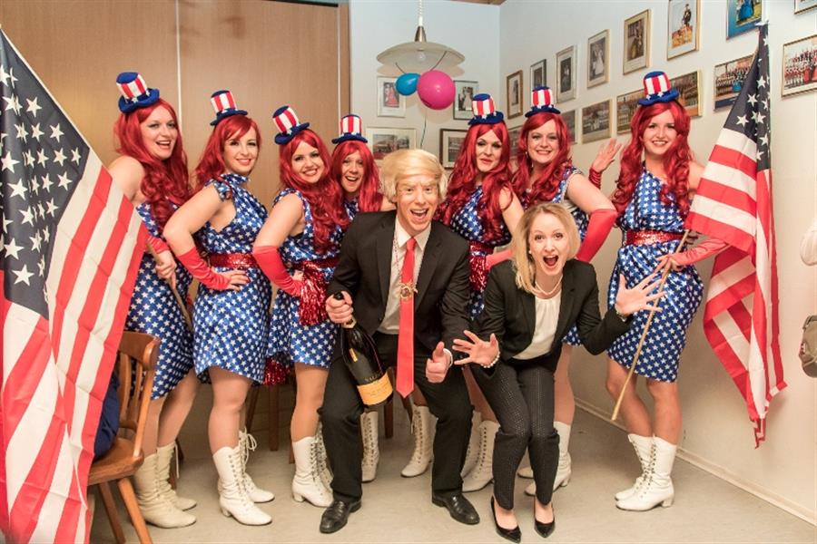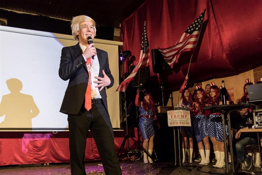 Eine zusätzliche maskierte Einlage prägt den Narrhallaball und die Wiederholung gibt es dann beim Sportlerball. Der amerikanische Wahlkampf prägte in diesem Jahr die Einlage. Konrad Glück als Donald Trump und Monika Pichlmaier als Hillary Clinton überzeugten in ihren Rollen absolut und sowohl die Exprinzen als auch die Exprinzessinen sowie ehemalige Narrhallesen begeisterten mit ihren Einlagen. Lang anhaltender Applaus war der Lohn für die Mühe und tolle Idee und vor allem der gesamten Darbietung.