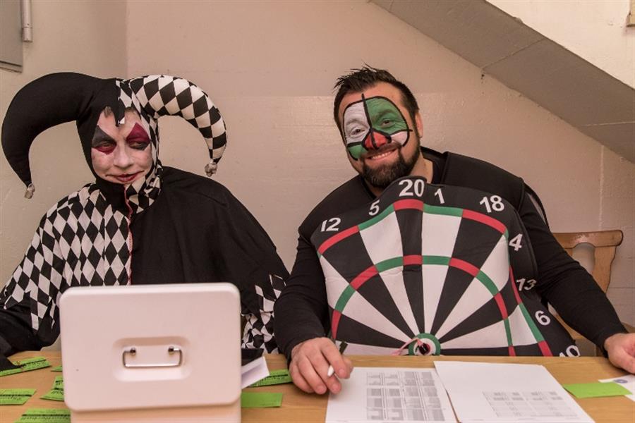 Helmut Tscherner hatte die Aufgabe, die Reservierungen entgegenzunehmen und die Halle war gut gefüllt mit einem bunt maskierten Faschingsvolk in allen Alterskategorien. Die Vis-a-Vis übernahmen das musikalische Kommando und die Tanzfläche war sofort gefüllt, denn man wusste, ein bunt gemischtes Programm war angesagt und da galt es die Pause dazwischen zum Lockern der Beine zu nutzen.